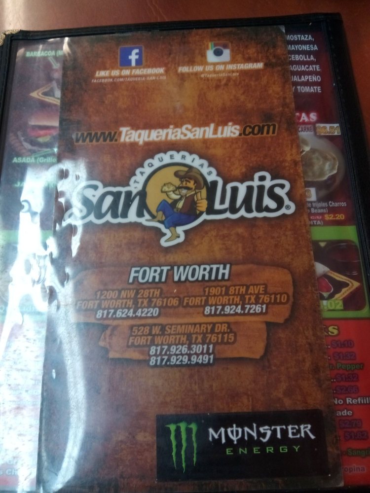 Introducing the Menu at Taqueria San Luis Fort Worth